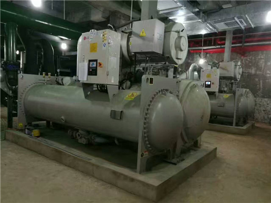 陜西商用中央空調螺桿機--螺桿式冷水機原理:螺桿式冷水機因其關鍵部件-壓縮機采用螺桿式故名螺桿式冷水機,機組由由蒸發器出來的狀態為的氣體冷媒;經壓縮機絕熱壓縮以后,變成高溫高壓狀態。被壓縮后的氣體冷媒,在冷凝器中,等壓冷卻冷凝,經冷凝后變化成液態冷媒,再經節流閥膨脹到低壓,變成氣液混合物。其中低溫低壓下的液態冷媒,在蒸發器中吸收被冷物質的熱量,重新變成氣態冷媒。